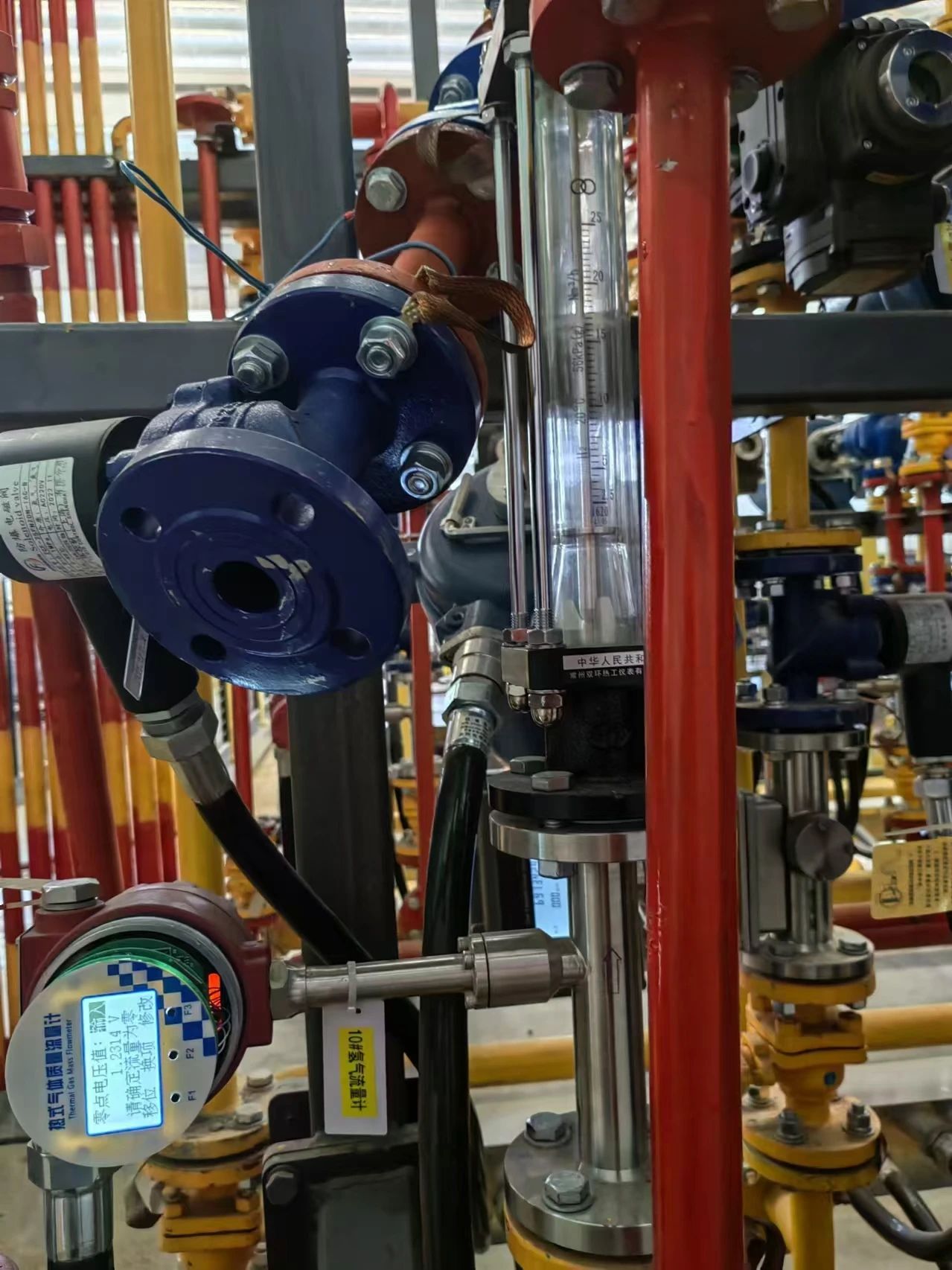 氮?dú)鉁y(cè)量采用1.5%精度的LWQ系列氣體渦輪流量計(jì)控制流量,因現(xiàn)場(chǎng)垂直安裝,選無注油表體。氫氣測(cè)量采用管道式SFMT系列熱式氣體質(zhì)量流量計(jì)。