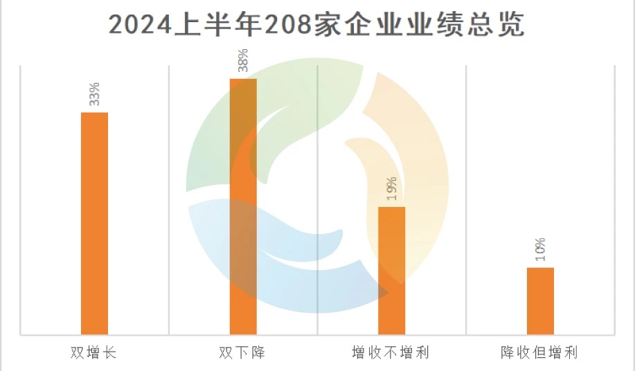 據統計,在已經發布2024年半年度報告的208家上市環保企業中,有80家企業呈現出雙降的情況,也就是營業總收入和凈利潤相較同期都有所下降。