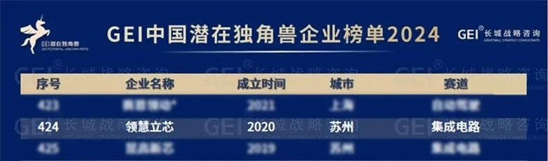 1024日長(zhǎng)城戰(zhàn)略咨詢發(fā)布《中國(guó)潛在獨(dú)角獸企業(yè)研究報(bào)告2024》,領(lǐng)慧立芯上榜。