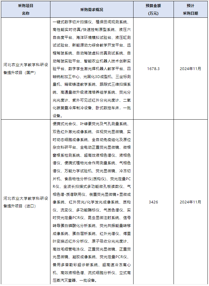 采購意向只是政府采購的初步安排,具體采購情況以河北農業大學發布的采購公告和采購文件為準,有意向的企業可持續關注該校發布的招標信息。