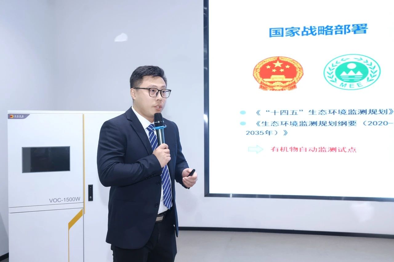隨后,產品研發部經理譚國斌博士為大家詳細介紹了本次發布的2位家族成員。《十四五生態環境監測規劃》、《生態環境監測規劃綱要(2020-2035)》等政策法規中都指出,國家將建設有機物自動監測試點;水質異味投訴頻發、GB5749-2022新增2項異味指標、GB/T 5750-2023引入新檢測方法;在這樣需求背景下,傳統分析檢測方法存在手工檢測時間滯后、數據量少等痛點。另外,我國食品和農產品農殘超標現狀不容樂觀,傳統快檢技術存在檢測項少、目標物單一、準確率低等局限性。農殘快速篩查面臨挑戰、急需高效篩查新技術。針對以上現狀與需求,禾信儀器集中力量研發推出了VOC-1500W水中異味和揮發性有機物在線自動監測系統和TAPI-TOF 1000M1快速篩查質譜移動檢測車兩款國內首創的新產品。在未來將助力水質檢測、食品安全、毒品檢測等更多領域。