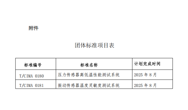 《壓力傳感器高低溫性能測試系統》等2項團體標準正式