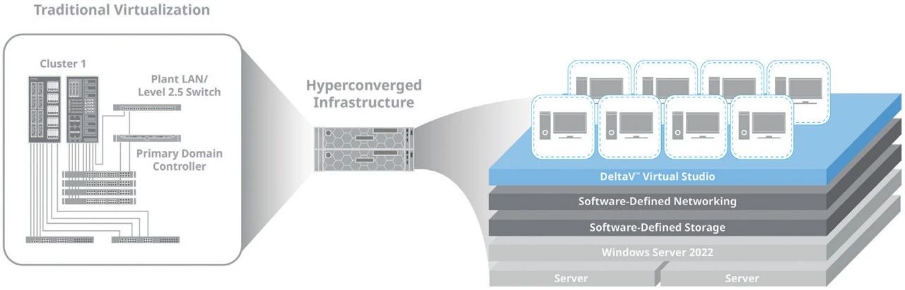 ▲圖1:超融合基礎(chǔ)架構(gòu)(HCI)是軟件定義平臺(tái)的構(gòu)建塊,結(jié)合了傳統(tǒng)和實(shí)時(shí)工作負(fù)載。艾默生的無(wú)界自動(dòng)化愿景就是一種軟件定義的控制技術(shù),該模型旨在通過(guò)消除專用控制硬件,使項(xiàng)目更容易執(zhí)行,更具成本效益,從而實(shí)現(xiàn)更靈活、可擴(kuò)展、面向未來(lái)的運(yùn)營(yíng)。