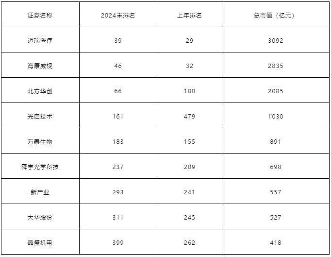 邁瑞醫療、海康威視等儀器企業上榜!中國上市公司50
