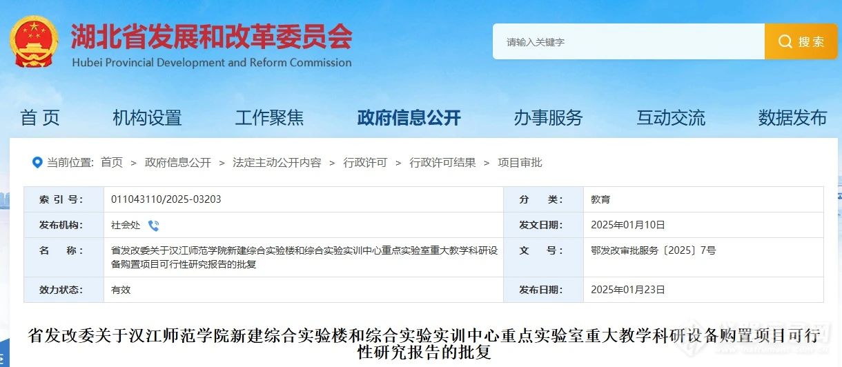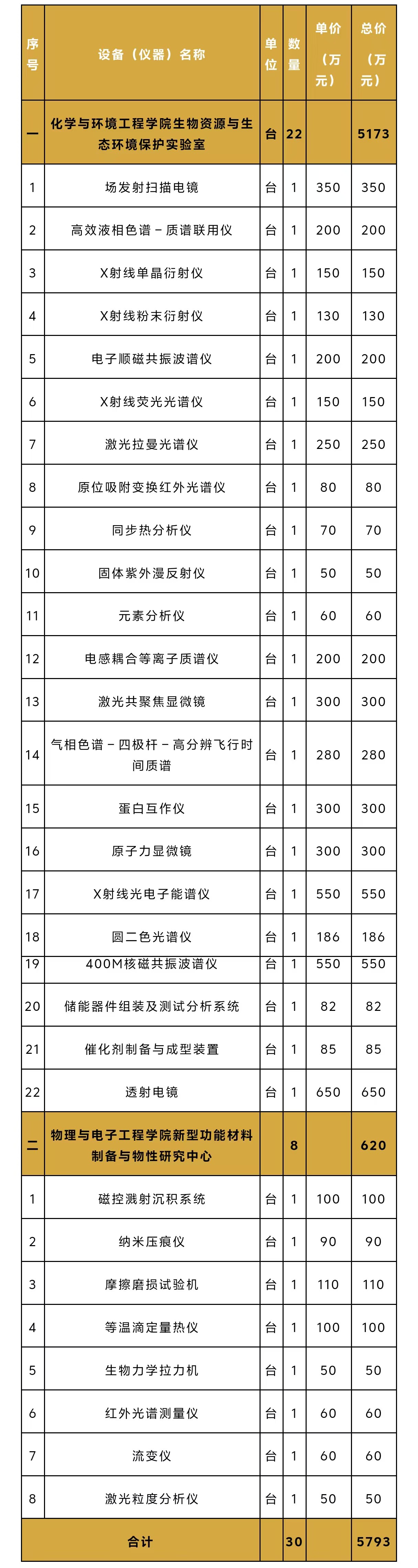 日前,湖北省發(fā)展和改革委員會(huì)發(fā)布了《關(guān)于漢江師范學(xué)院新建綜合實(shí)驗(yàn)樓和綜合實(shí)驗(yàn)實(shí)訓(xùn)中心重點(diǎn)實(shí)驗(yàn)室重大教學(xué)科研設(shè)備購(gòu)置項(xiàng)目可行性研究報(bào)告的批復(fù)》。該項(xiàng)目總投資5793萬(wàn)元,用于重大科研儀器設(shè)備購(gòu)置,資金來源為除爭(zhēng)取中央投資外,其余由學(xué)校自籌解決。擬更新設(shè)備共30臺(tái)(套)【清單表附表】,其中化學(xué)與環(huán)境工程學(xué)院生物資源與生態(tài)環(huán)境保護(hù)實(shí)驗(yàn)室更新設(shè)備22臺(tái)(套)、物理與電子工程學(xué)院新型功能材料制備與物性研究中心更新設(shè)備8臺(tái)(套)。淘汰同品目設(shè)備38臺(tái)(套)。