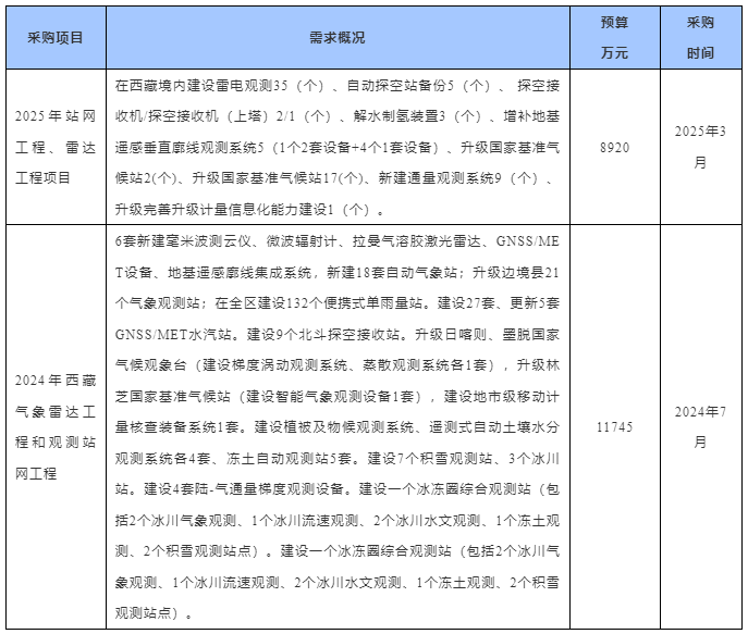 西藏自治區大氣探測技術與裝備保障中心2024年6月~2025年3月儀器設備采購意向匯總表