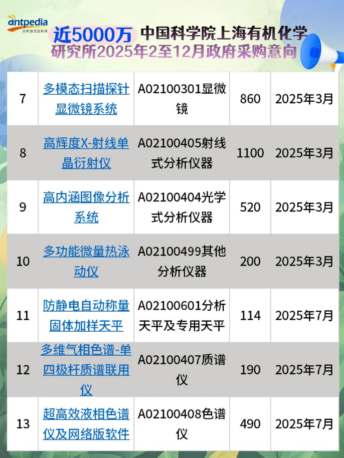 中國科學(xué)院上海有機化學(xué)研究所2025年2至12月政府采購意向發(fā)布,預(yù)算金額4895萬,采購項目13個。