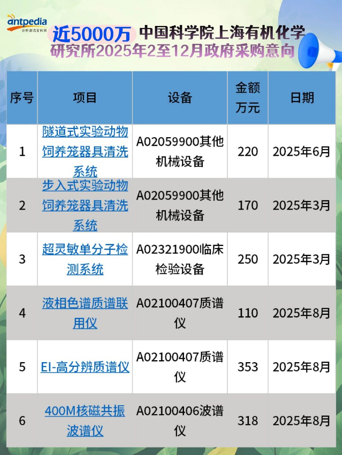 4895萬!上海有機化學(xué)研究所年度采購預(yù)算公布