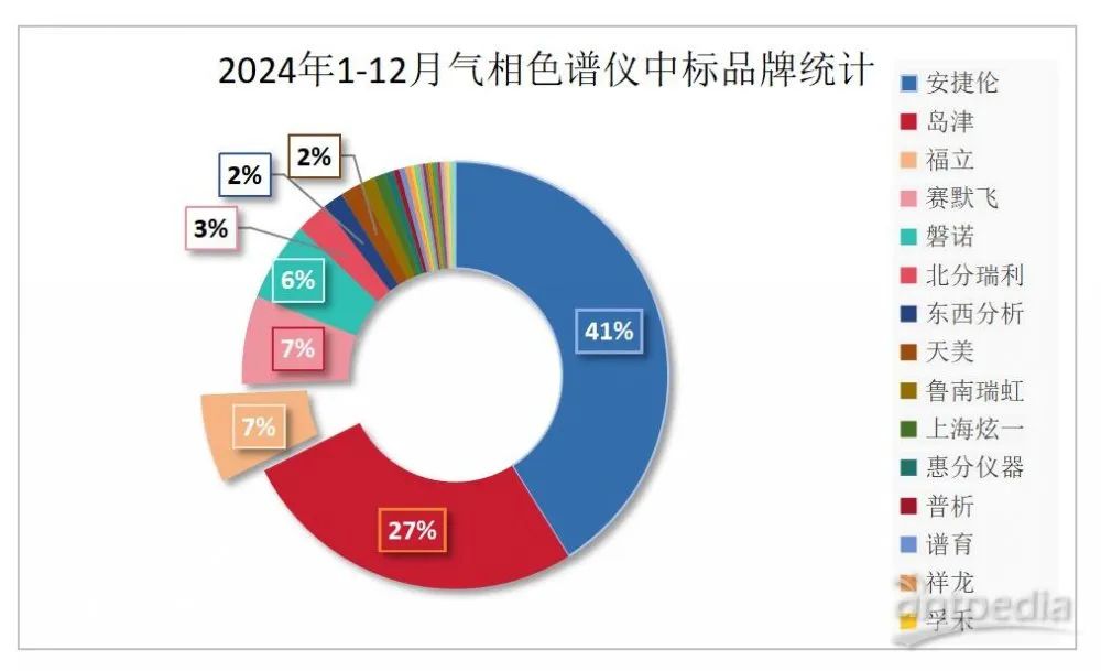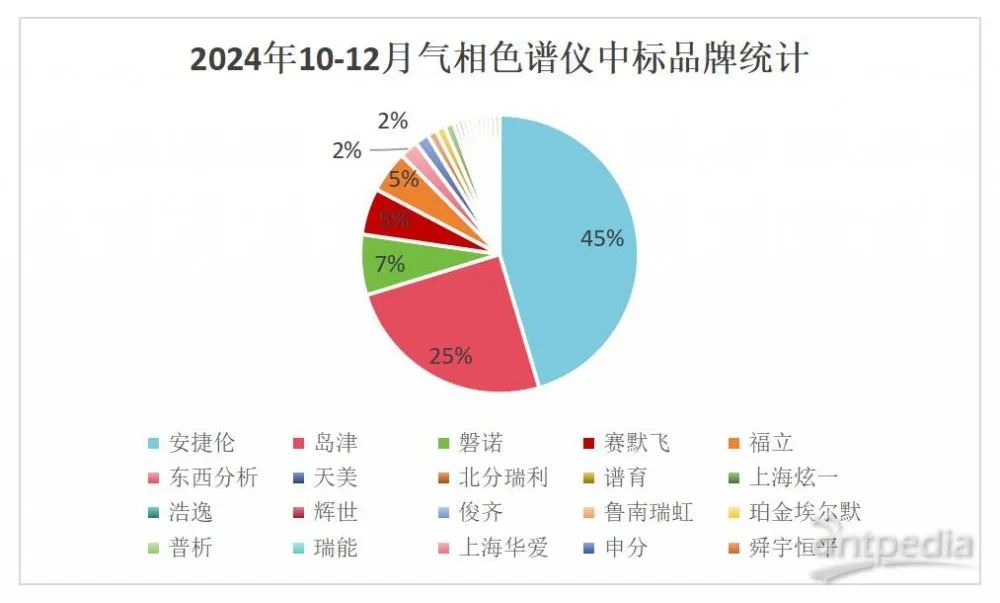 從2024年全年的中標(biāo)數(shù)據(jù)來看,國產(chǎn)品牌的氣相色譜儀總中標(biāo)占比已達(dá)到25%,即占據(jù)了市場的四分之一份額。這一成績不僅展現(xiàn)了國產(chǎn)品牌的強(qiáng)勁發(fā)展勢頭,也凸顯了國產(chǎn)氣相色譜儀在市場中日益重要的地位,未來有望進(jìn)一步突破國際品牌的市場壟斷,實(shí)現(xiàn)更大的發(fā)展。