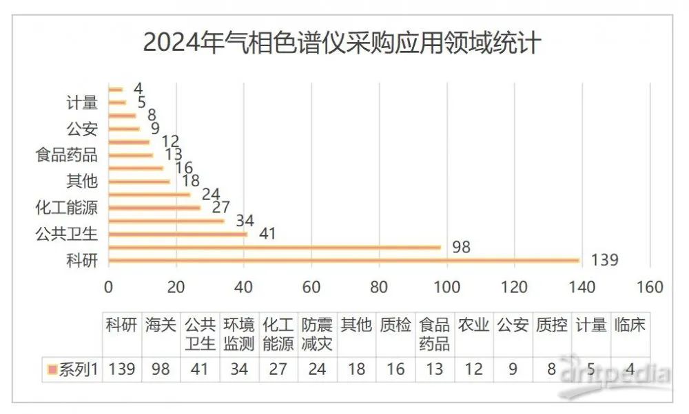 從采購行業(yè)來看,氣相色譜儀的應(yīng)用領(lǐng)域非常廣泛,主要集中在科研、海關(guān)、公共衛(wèi)生(疾控)、環(huán)境監(jiān)測、化工能源、防震減災(zāi)等行業(yè)。