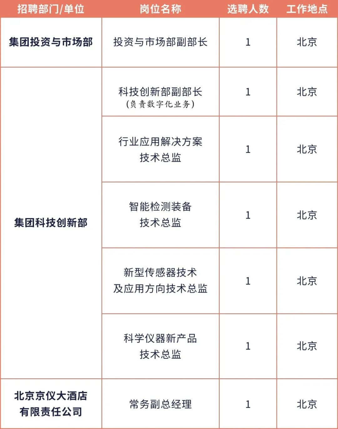 本次選聘崗位共7個,其中京儀集團總部崗位6個,直屬企業崗位1個。