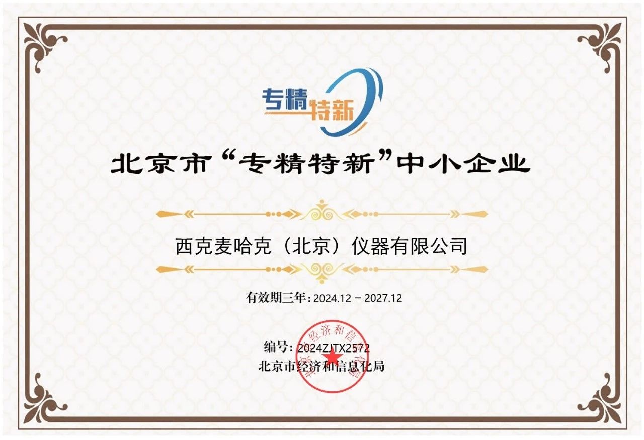 西克麥哈克榮獲北京市2024年度“專精特新”中小企