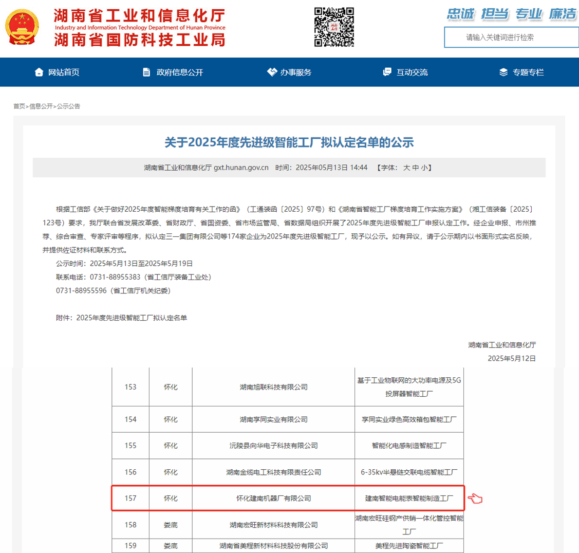 5月13日,懷化建南機器廠有限公司獲評“湖南省 2025 年度先進(jìn)級智能工廠”稱號,這是公司在獲得懷化市基礎(chǔ)級智能工廠榮譽稱號后,再一次登上智能工廠更高層級的榮譽榜。是全體建南人共同努力的成果。