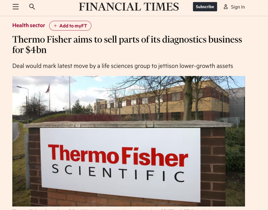 賽默飛287億出售診斷業務