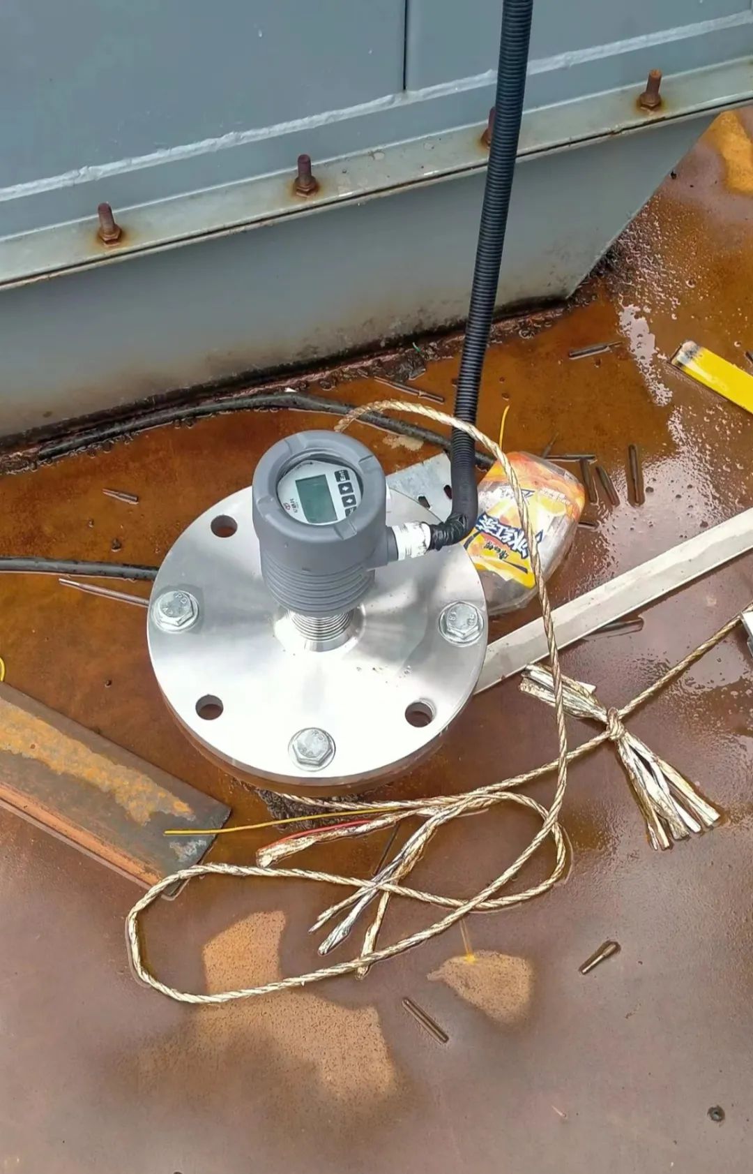 該雷達物位計采用高頻雷達技術,4~20mA輸出, HART協議,DN150法蘭連接,能穿透粉料表面粉塵層。