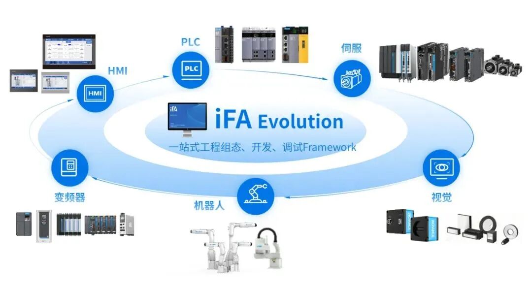 匯川技術的iFA平臺,是歷經五年自主研發的成果,作為國內首款工業自動化全集成軟件平臺,它是FA架構的核心樞紐。iFA平臺實現了從裝備概念設計到最終制造投產的全鏈路打通,達成從設備到工藝再到產線的全集成開發,并與工藝標準化平臺InoQuickPro、數字化平臺InoCube深度融合,實現OTIT的無縫銜接。該平臺集成設計仿真、虛擬調試、生產運營等多項功能,擁有強大的編程、監控和控制能力,為工廠級互聯互通與IoT融合提供了有力支持,幫助用戶實現柔性制造需求。