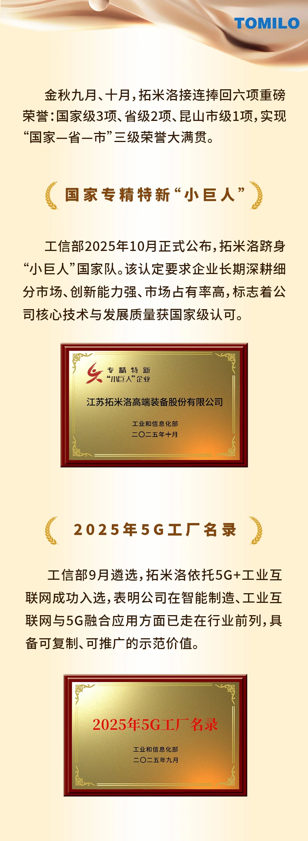 拓米洛公司榮獲多項國家級與省級榮譽