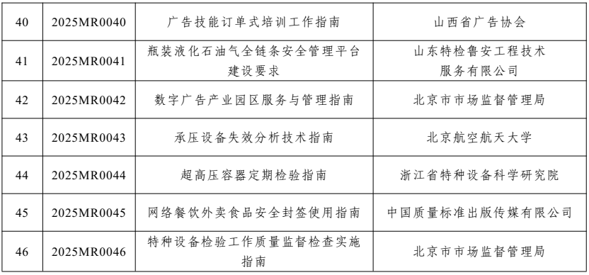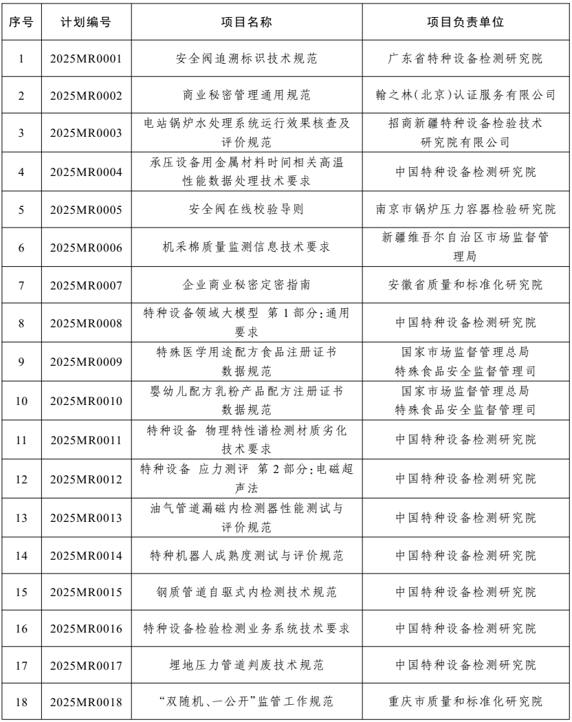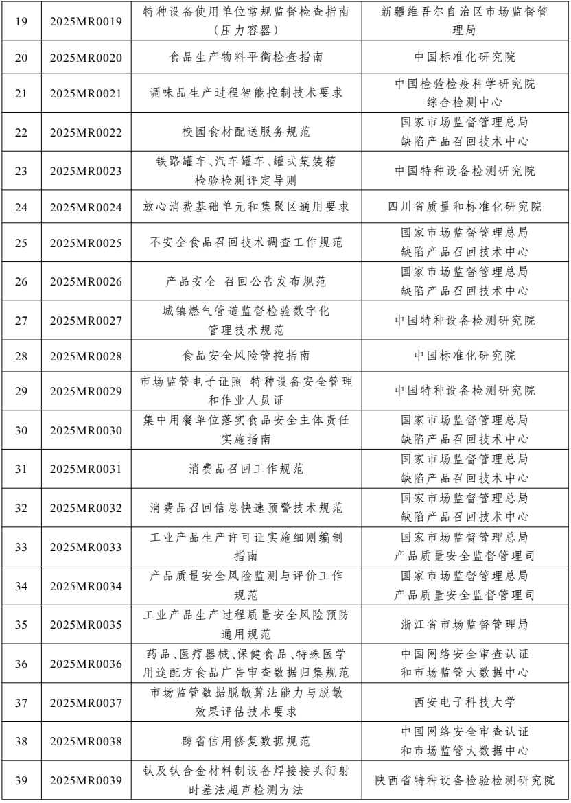 2025年度市場監管行業標準制修訂項目計劃