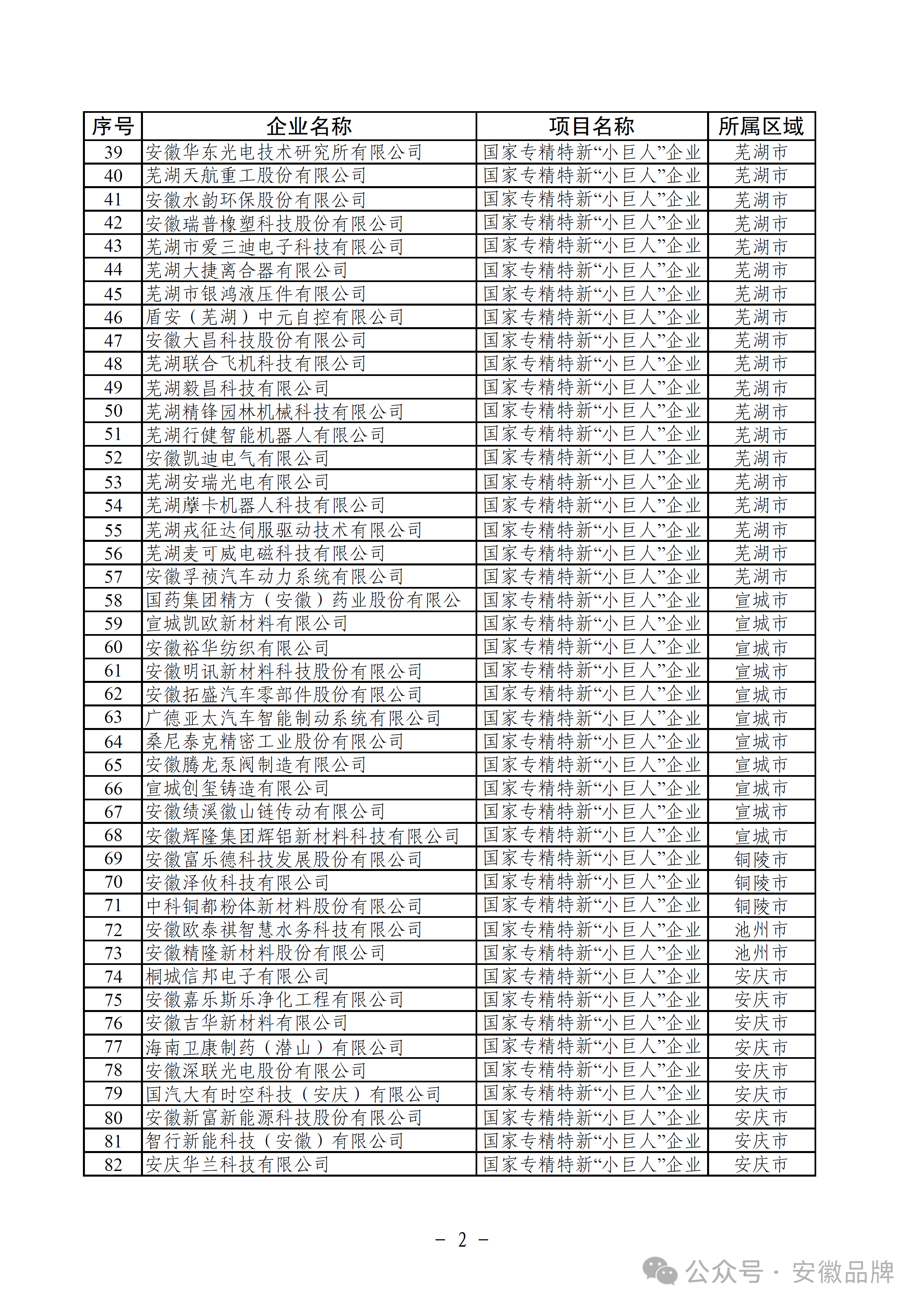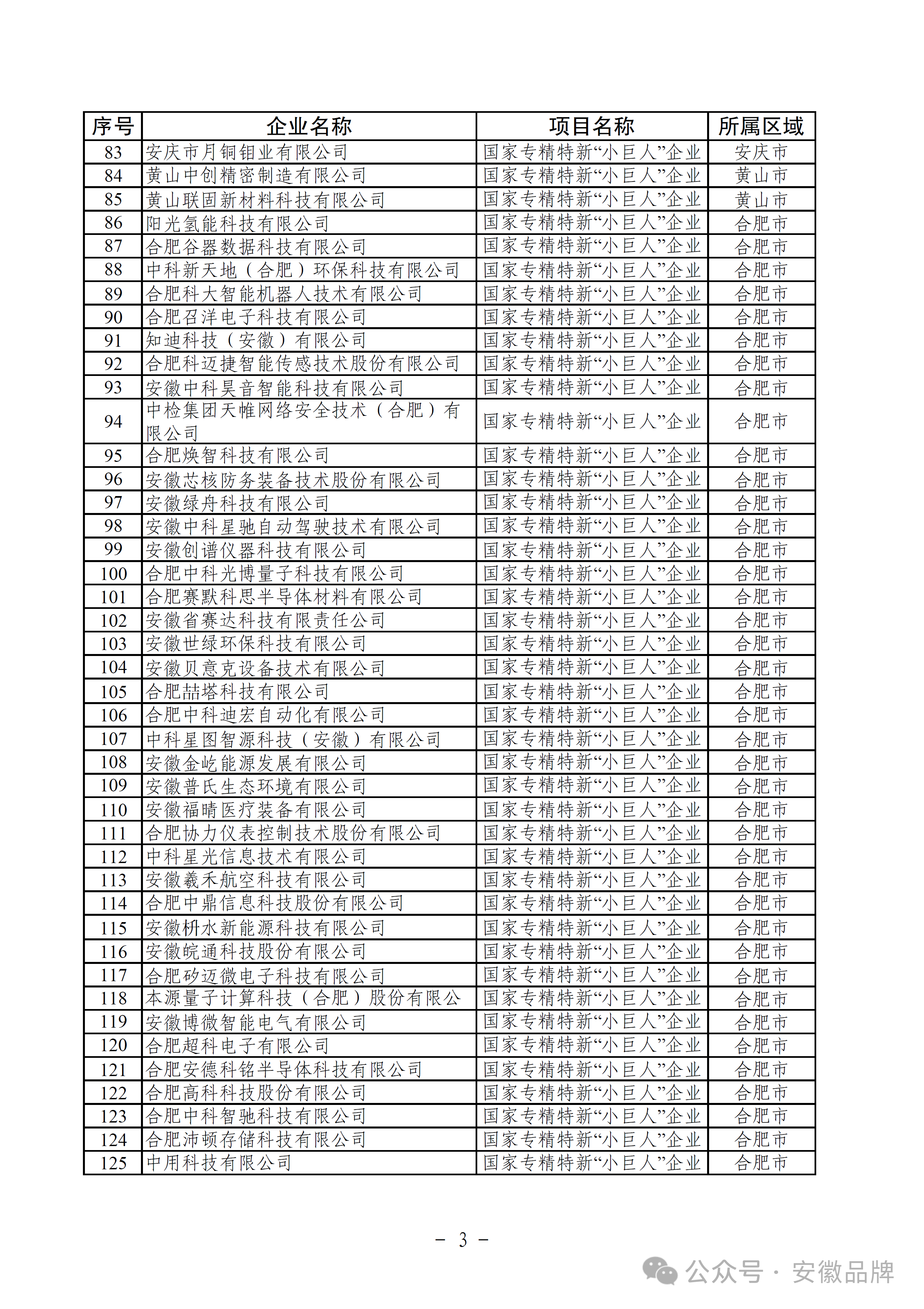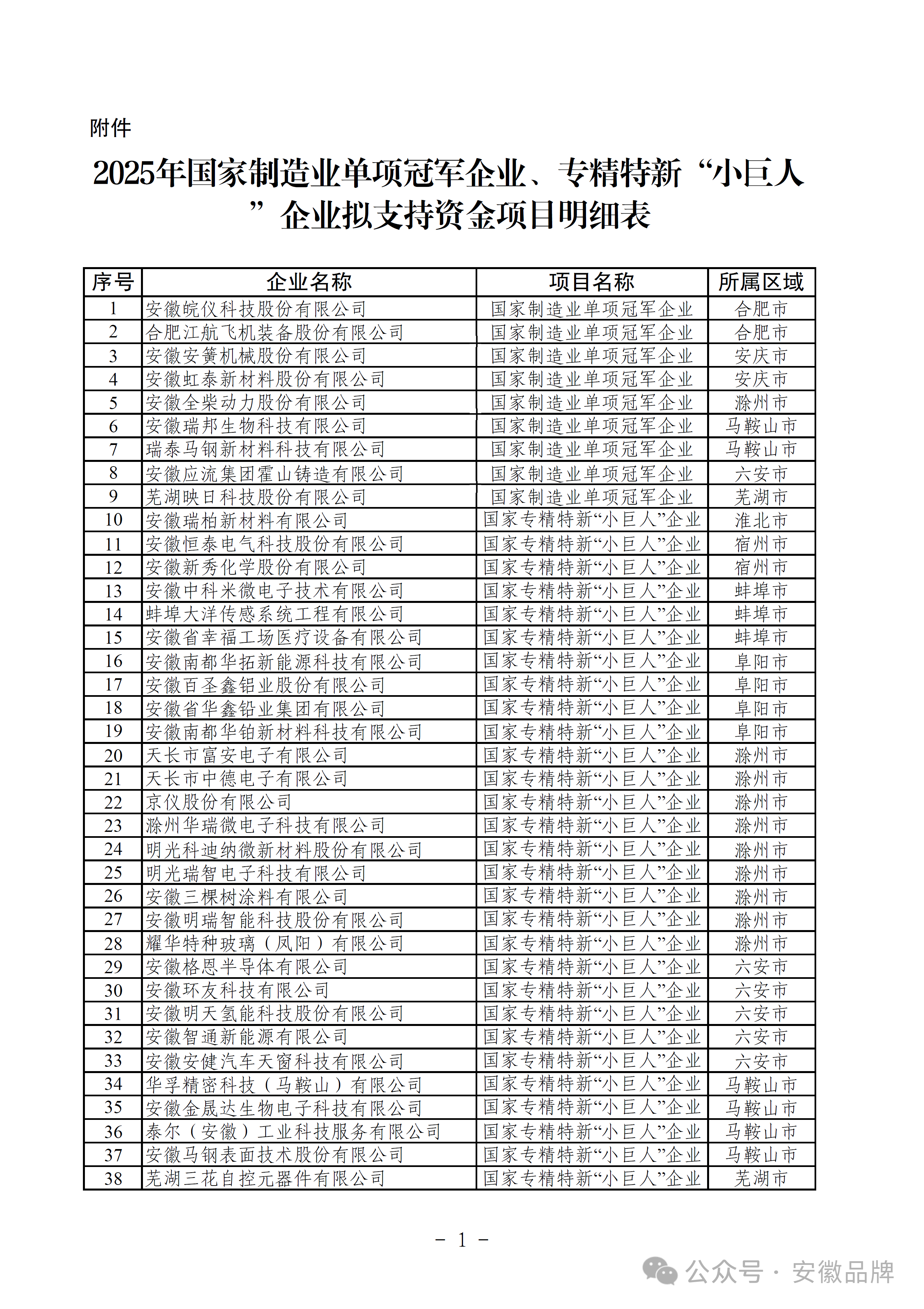 安徽省工業和信息化廳2025年國家制造業單項冠軍企業、專精特新“小巨人”企業擬支持資金項目公示