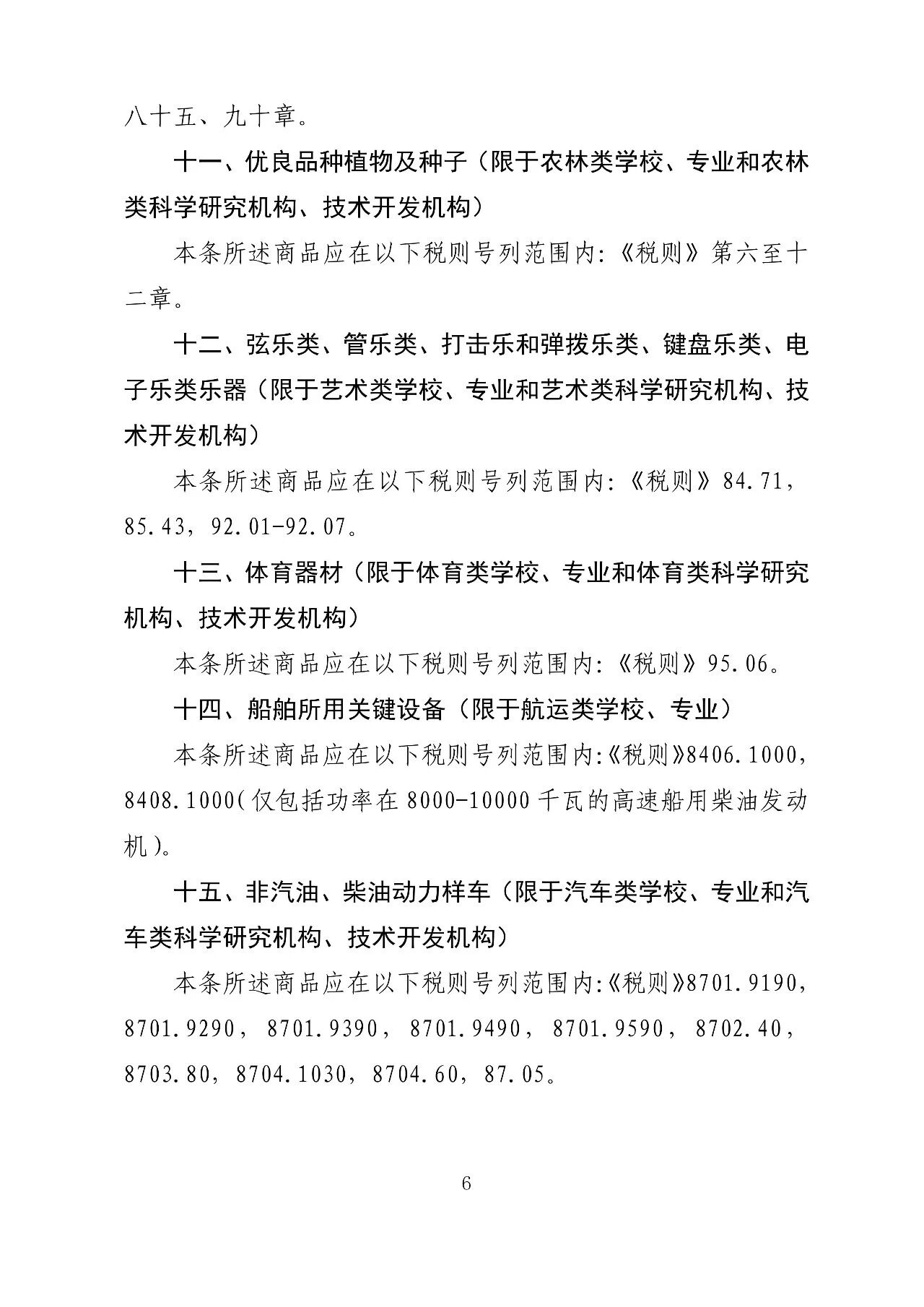 一、科學研究機構、技術開發機構、學校、黨校(行政學院)、圖書館的免稅進口商品清單,按照附件第一至十五條執行。