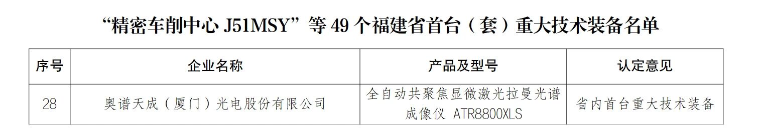 曼光譜成像儀入選福建省首臺(套)重大技術裝備名單