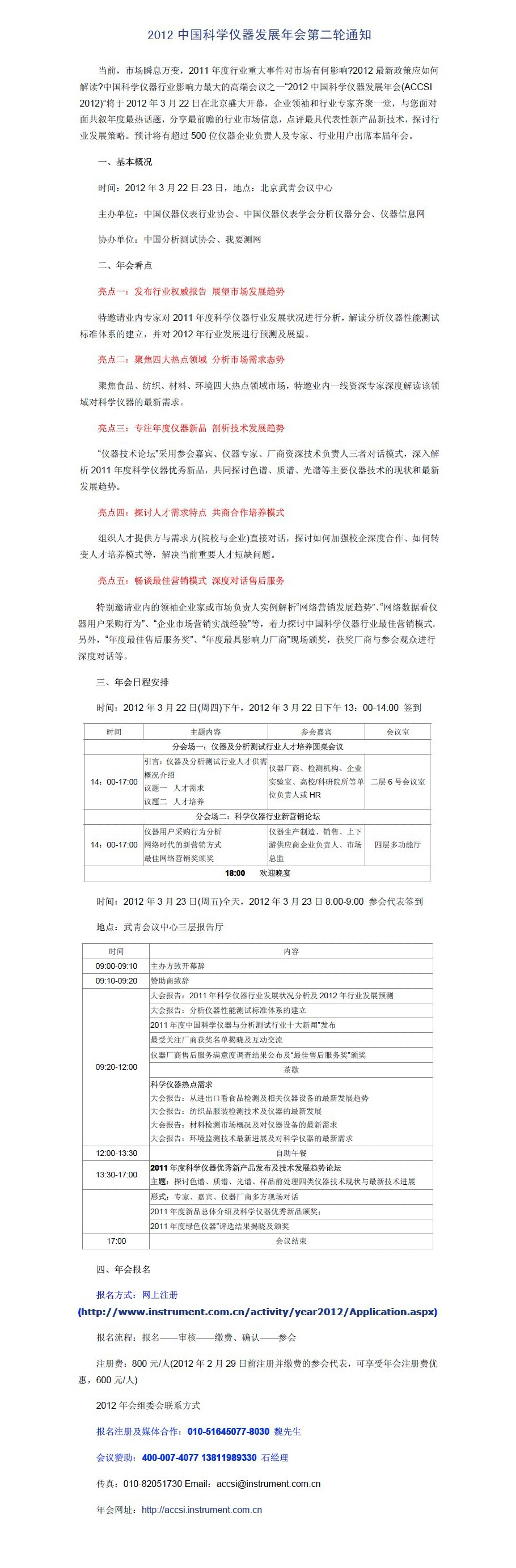 2012中國科學(xué)儀器發(fā)展年會第二輪通知